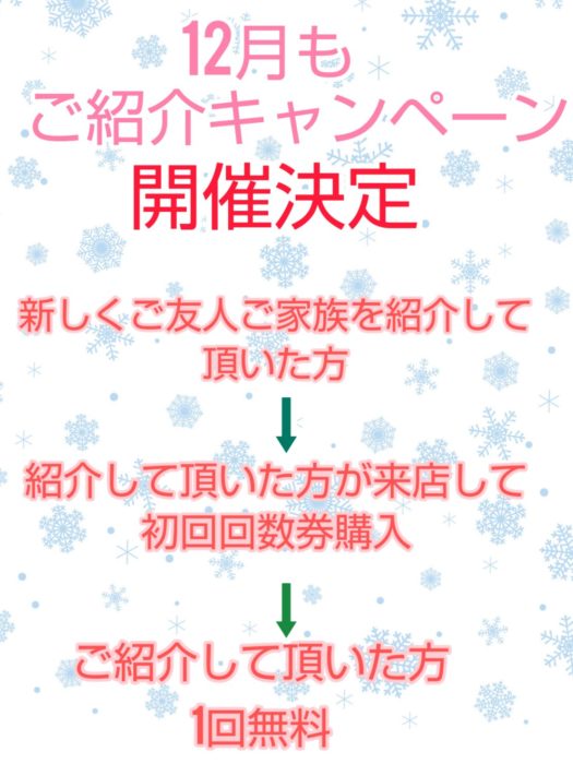 大好評につき12月も、ご紹介キャンペーン継続決定!